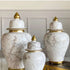 Ceramic Ginger Vase Set. Three piece set. White / Gold